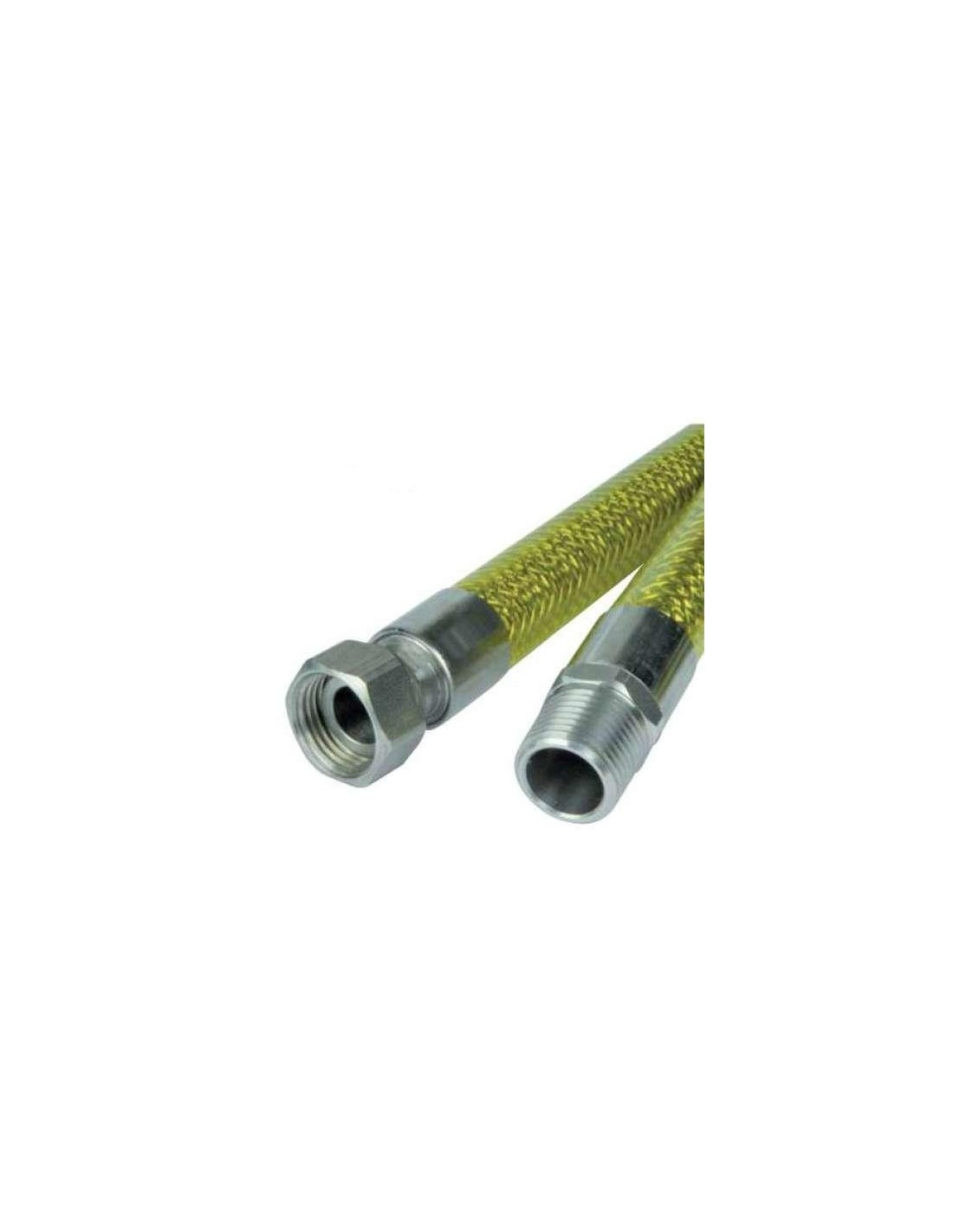 1/2 "male female female kitchen connection hose According to UNI EN 14800 Insulating sheath in transparent PVC, fireproof, non-toxic AISI 304 braid Tube: AISI 316 L Connections: DN 1/2 ”AISI 304 Seals: NBR supplied PE max: 0.5 bar TE max: 60 ° C