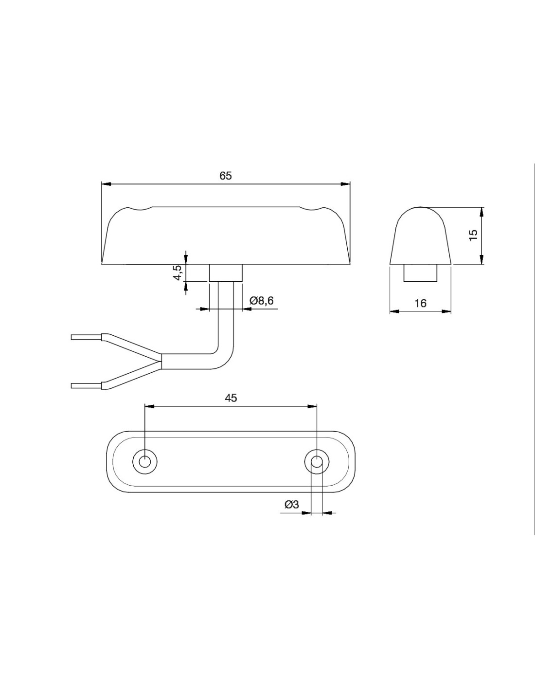 LED front position light (white) without reflector (type PL).
