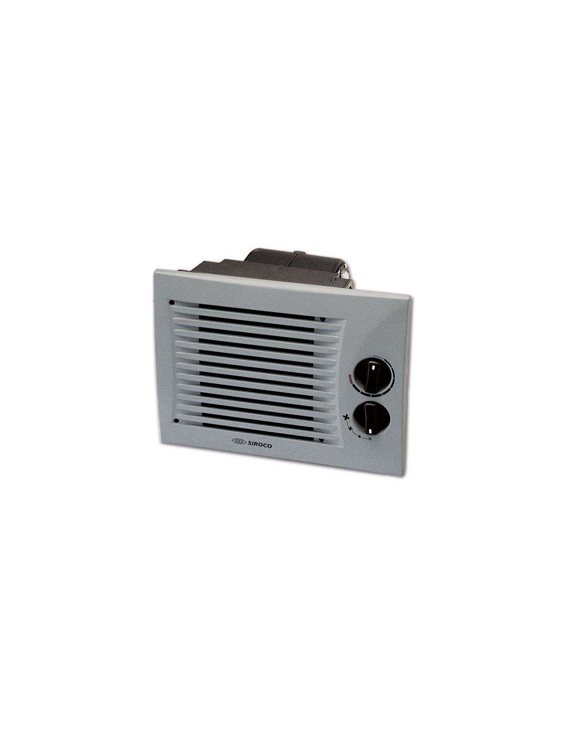 Riscaldatore a tre velocità con mascherina e selettore della temperatura e velocità.