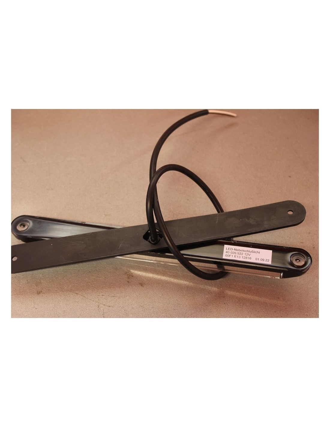 Full LED clear lens rear fog light for position function with loose 0.5m cable. its peculiarity is the black resin base.