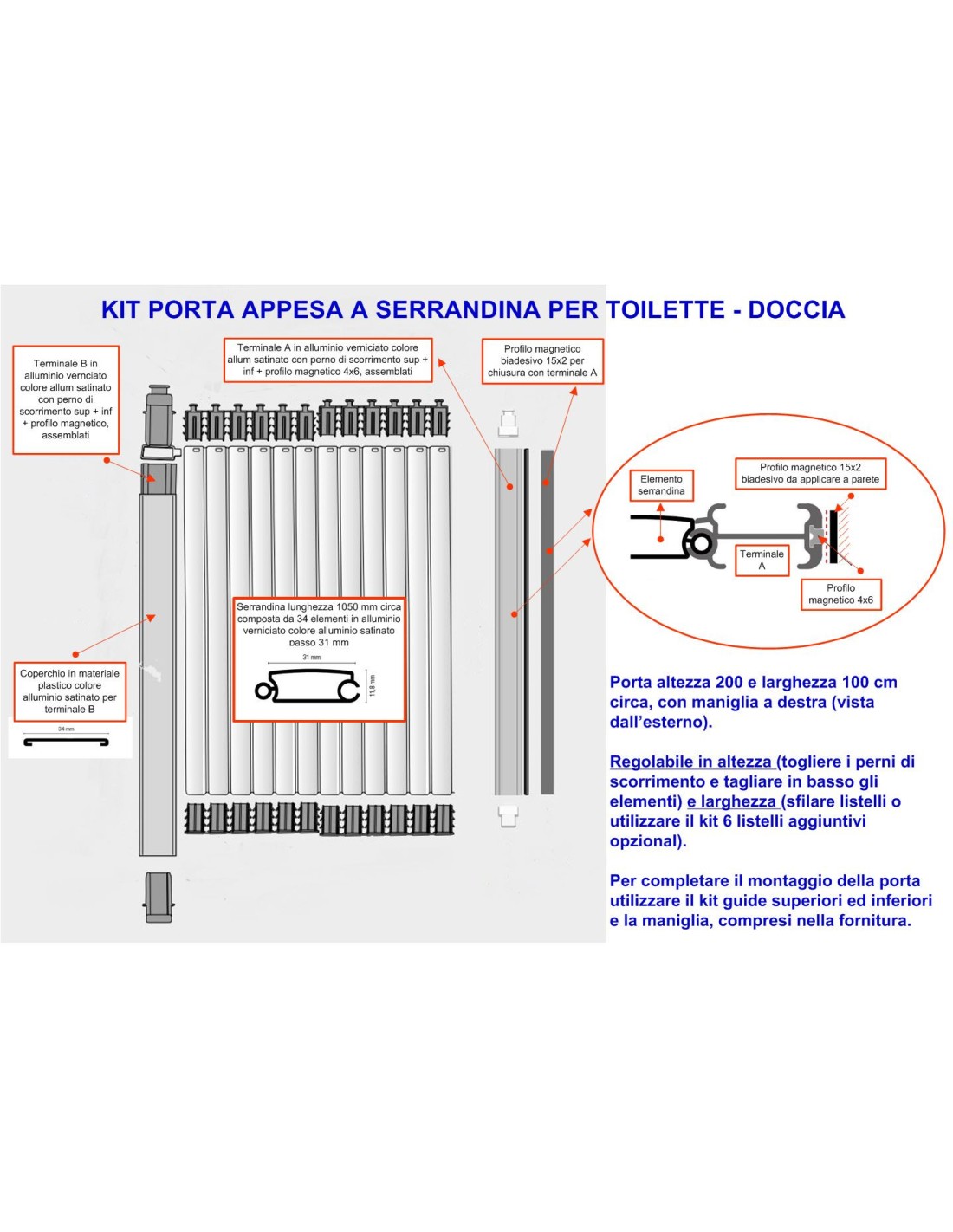 - una porta a serrandina alta 200 cm e larga 100 cm circa (31 moduli + 2 terminali)