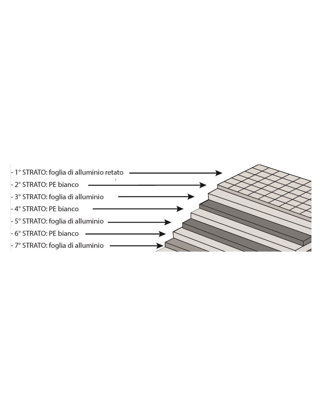 Material 7 quilted layers made up of 4 layers of aluminum alternating with 3 layers of white PE