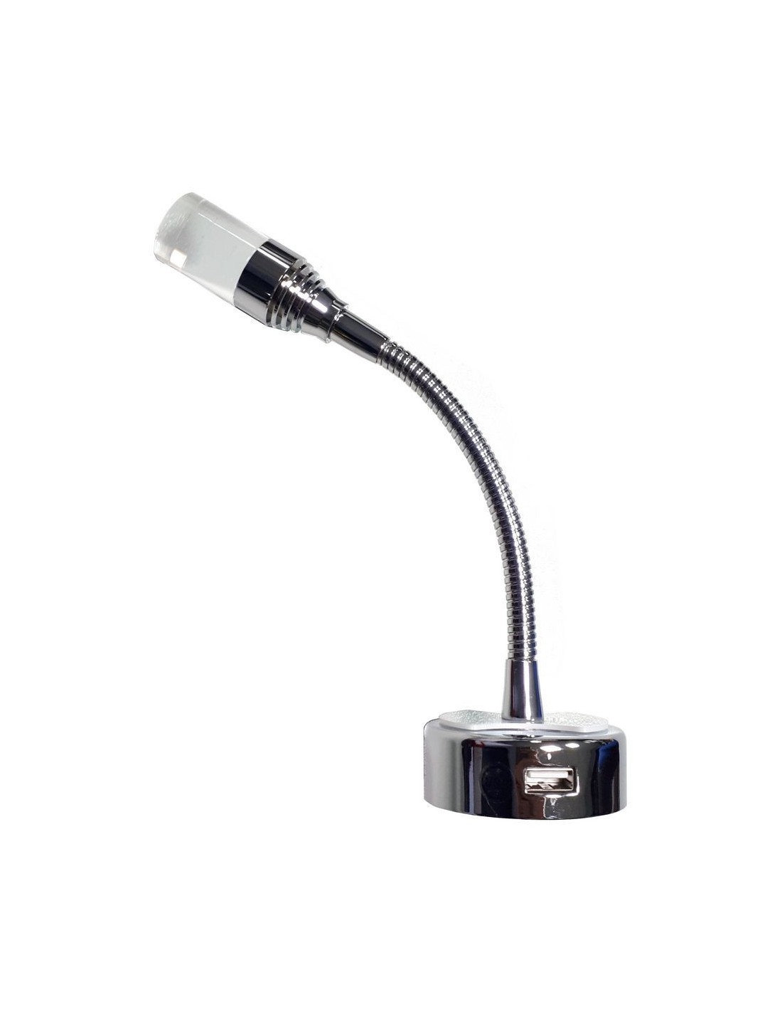 LED spotlight, flexible rod, aluminum head, with switch and USB socket