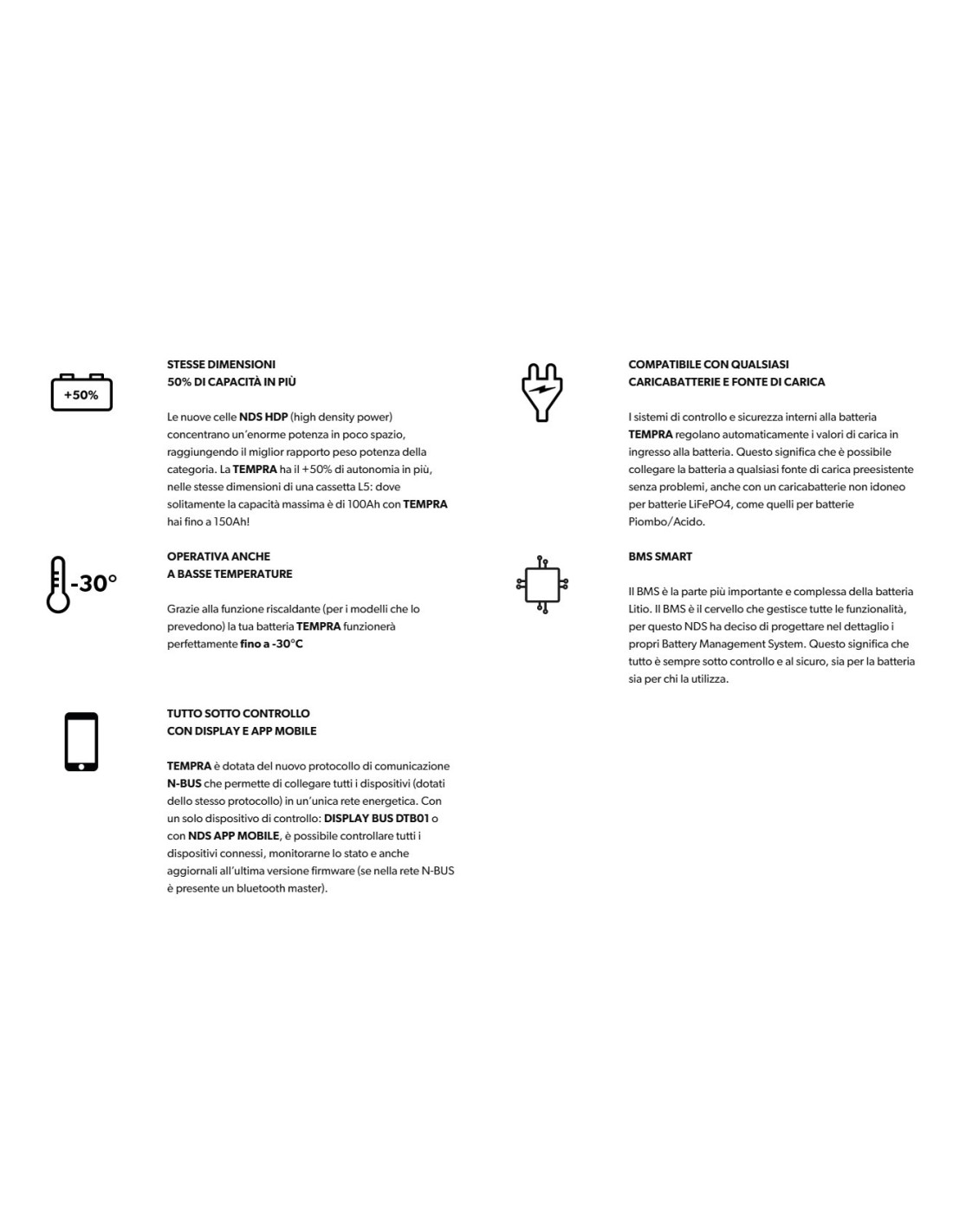 NDS TEMPRA LITHIUM BATTERY is the new generation top-of-the-line LiFePO4 Lithium battery designed and manufactured entirely in Italy.