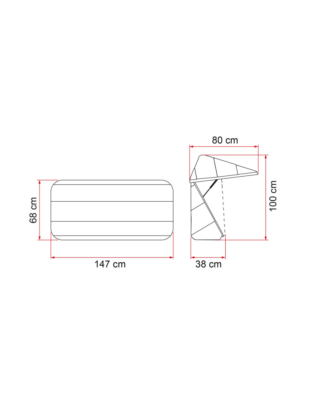 Dimensioni 147x68x38 cm