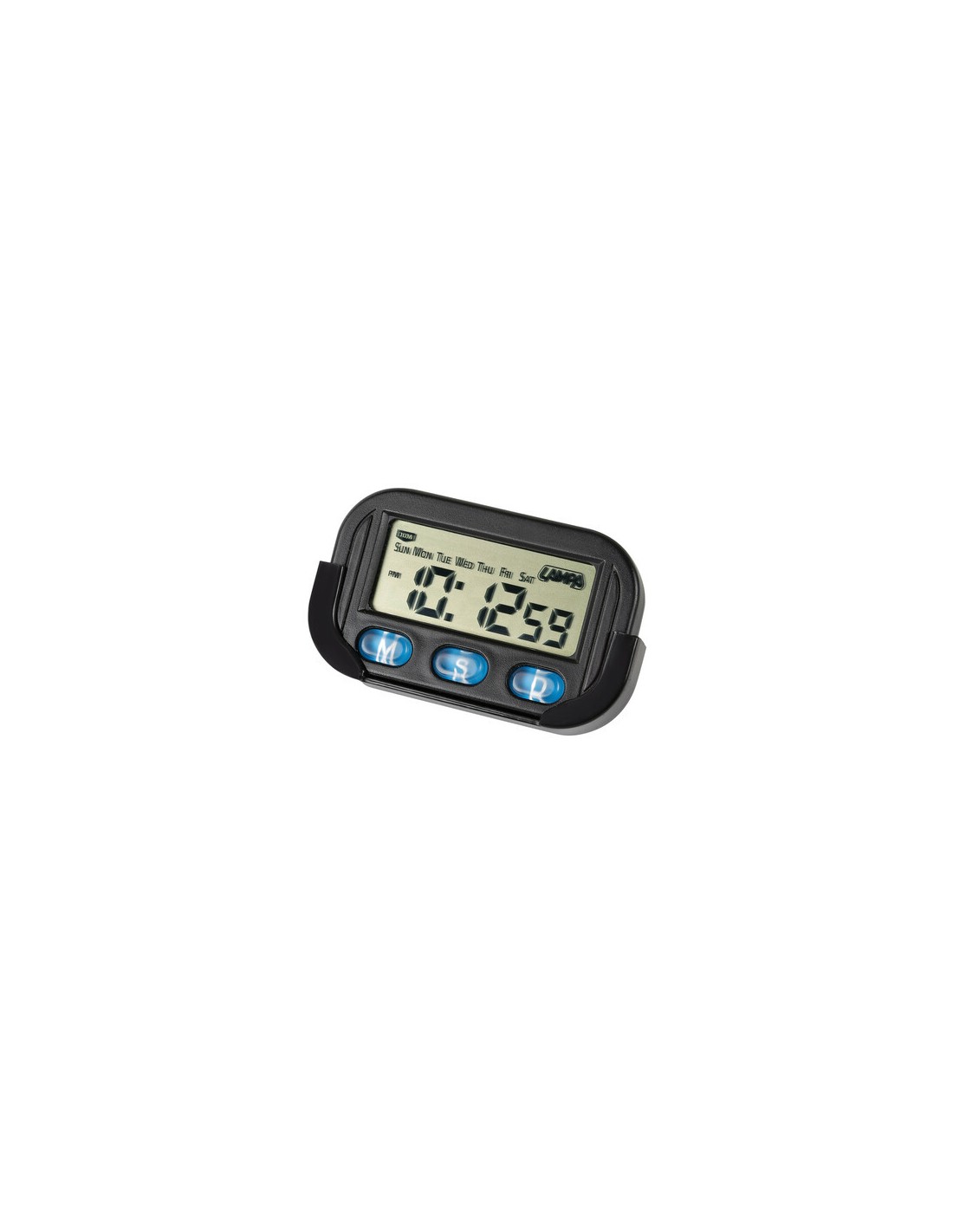 Display with large fonts for easy reading. Complete with reclining support/pedestal and adhesive base.