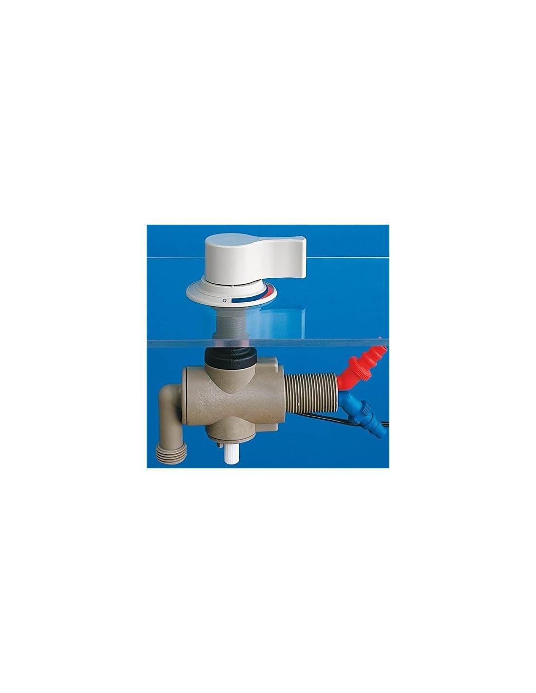 REICH - STYLE2000 Under-counter mixer with white knob switch no ring nut above top red and blue