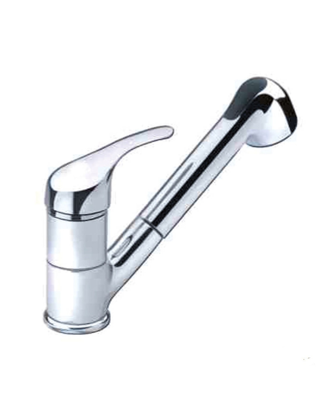 Chromed metal single lever mixer with flexible and adjustable spout, gray colour