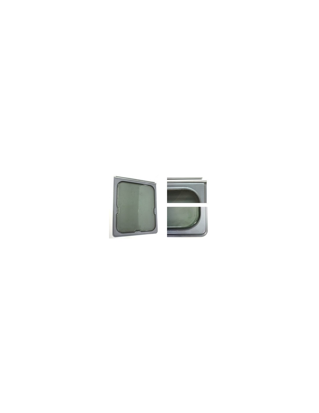 Window with double gray glass (OP= opaline grey) hinged profile, anodized with silk-screen printing