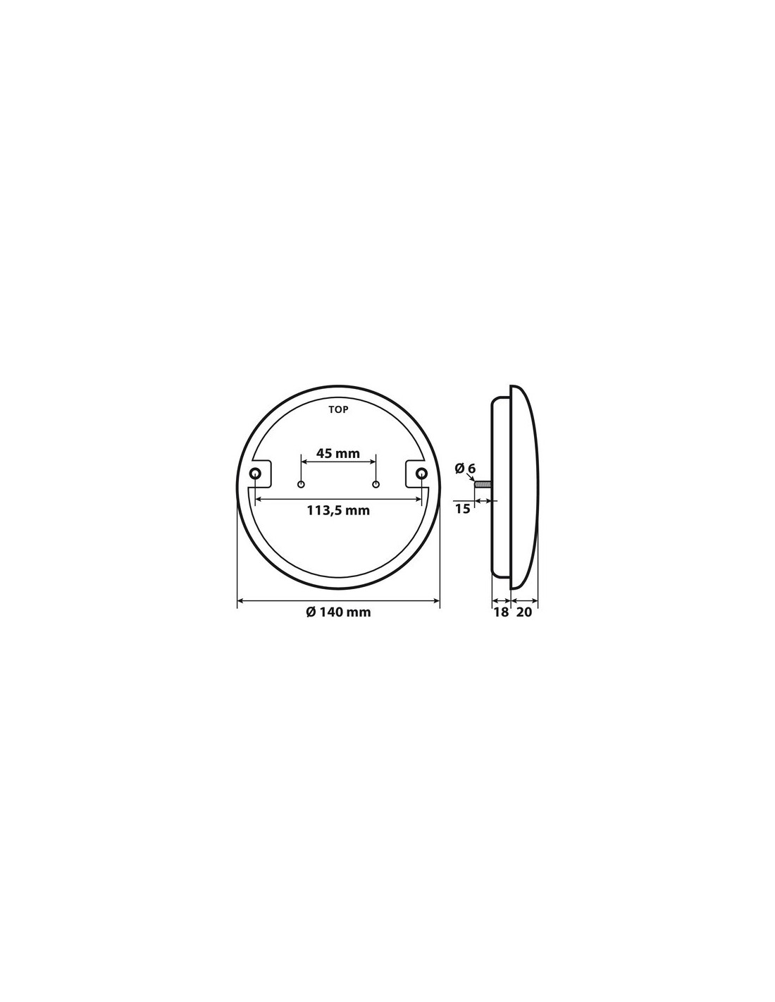 ROUND REVERSING LAMP LED 12 / 24V Ø 140 mm