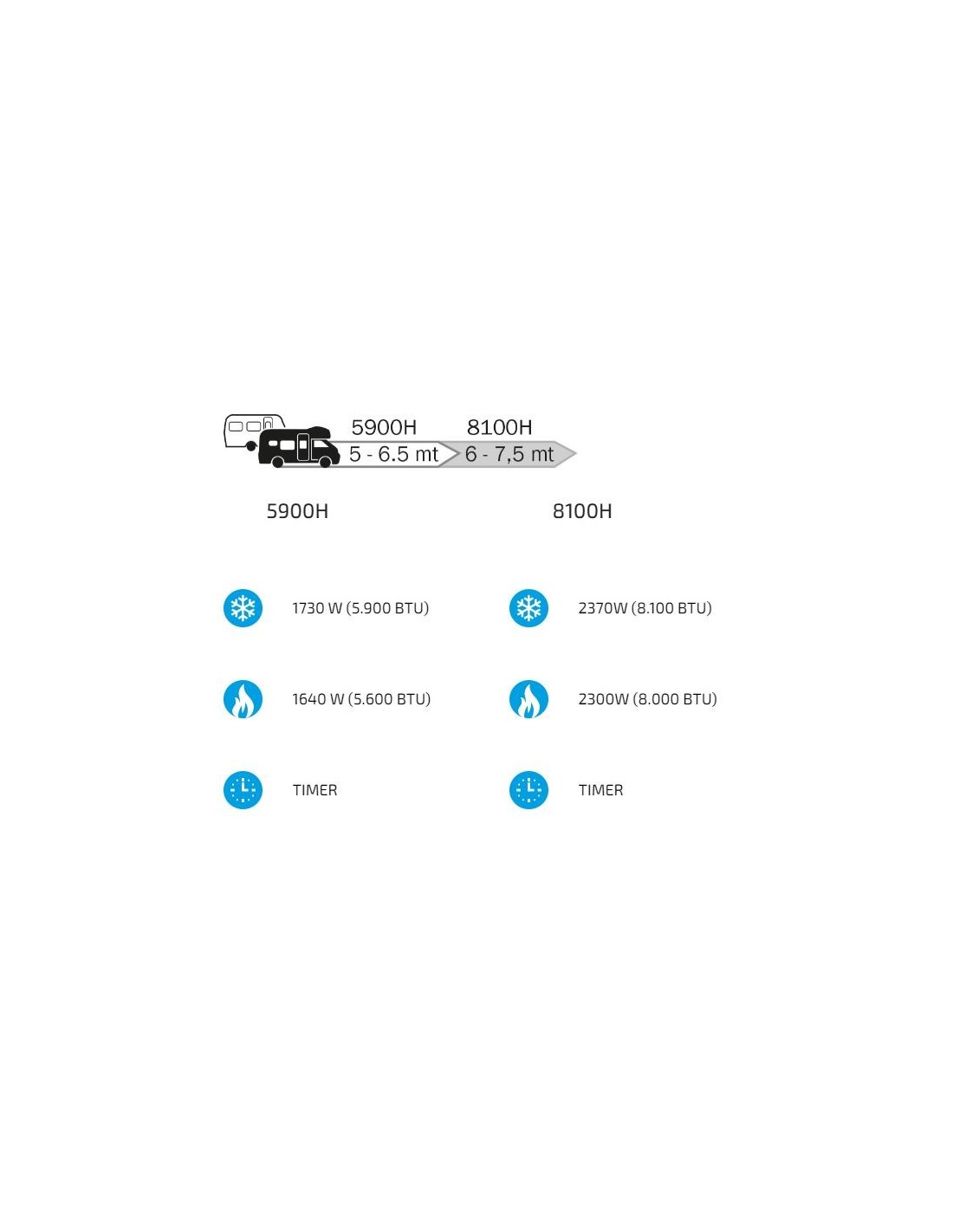 The SilentPlus 5900H model is designed for low consumption and can also be connected to a battery through a pure sine wave inverter of at least 1500W (Nominal) for use with the vehicle in motion.