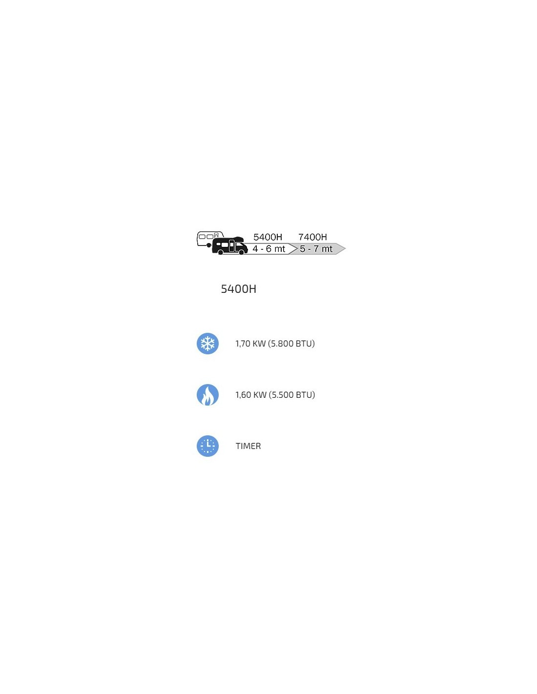 The CLIMA e-VAN 5400H model has been designed for low consumption and can also be connected to a battery through a pure sine wave inverter of at least 1500W (Regime) for use with the vehicle in motion.