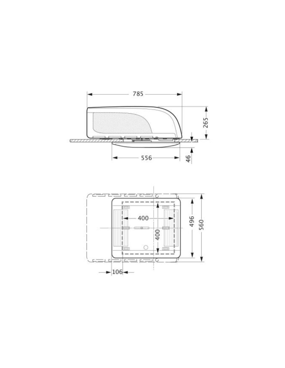 Dimensions opening in the roof (W x D) 380 x 350 mm / 400 x 400 mm