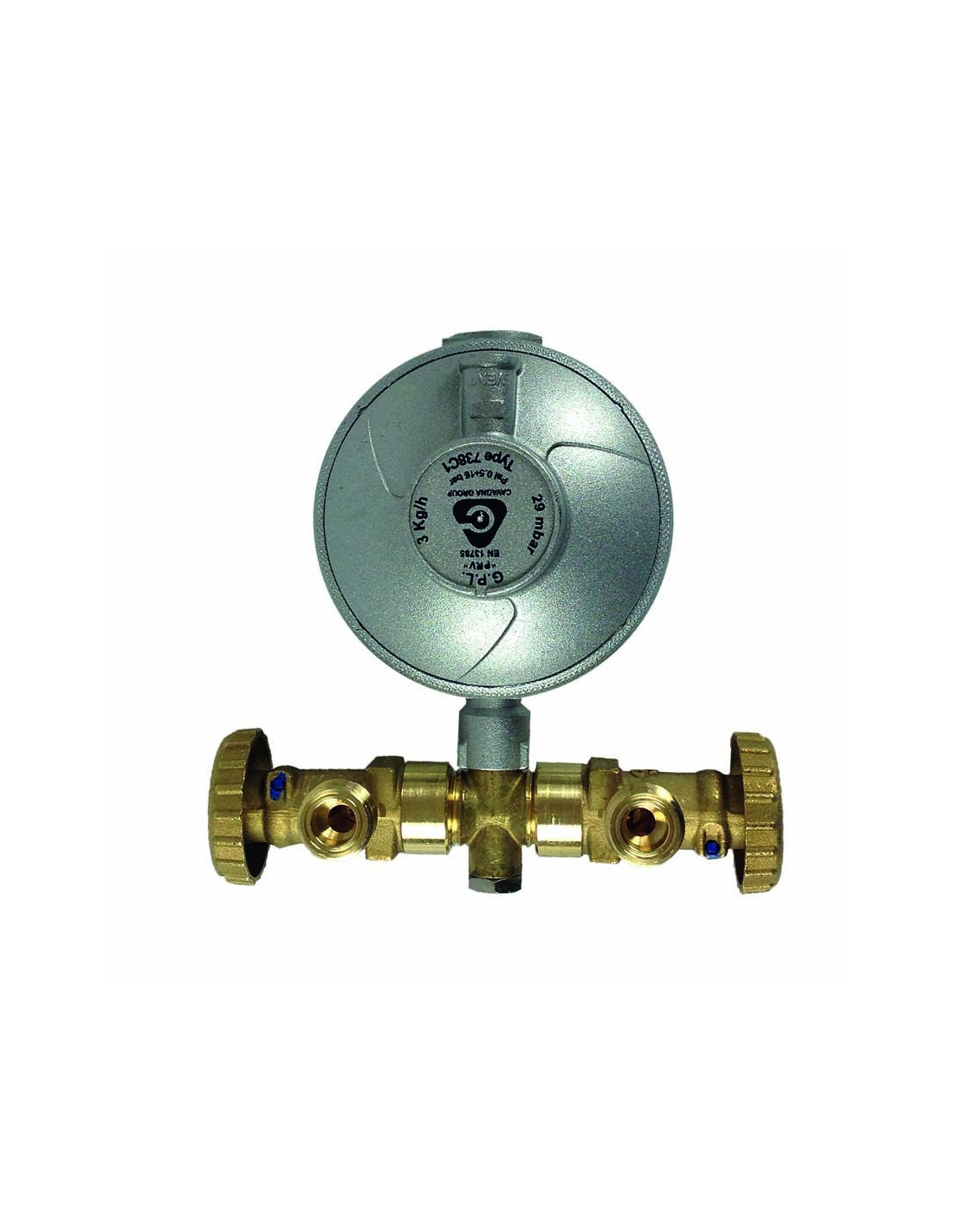Installation control unit for 2 cylinders, with built-in non-return device according to the UNI7131 standard, without 18 bar safety valve and control pressure gauge.