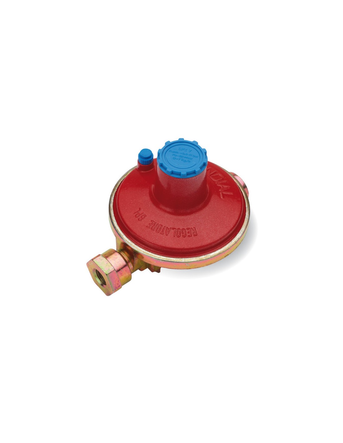 Low pressure regulator 1 Kg / h for LPG fixed calibration horizontal connection. Fixed setting 30mbar. 25xPG key Capacity 1 Kg / h EN112864 Outlet: PG hose connector dia. 10 mm. Entry: W20x1 / 14 "LH
