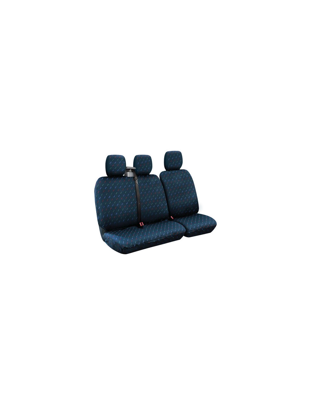 Pair of jacquard front seat covers with bag and armrests - Blue Complete with headrest covers. Universal for most cars with standard seats, with and without side airbags Universal for most standard seats Compatible with seats equipped with side airbags Lightfast colours Soft padding Headrest covers included