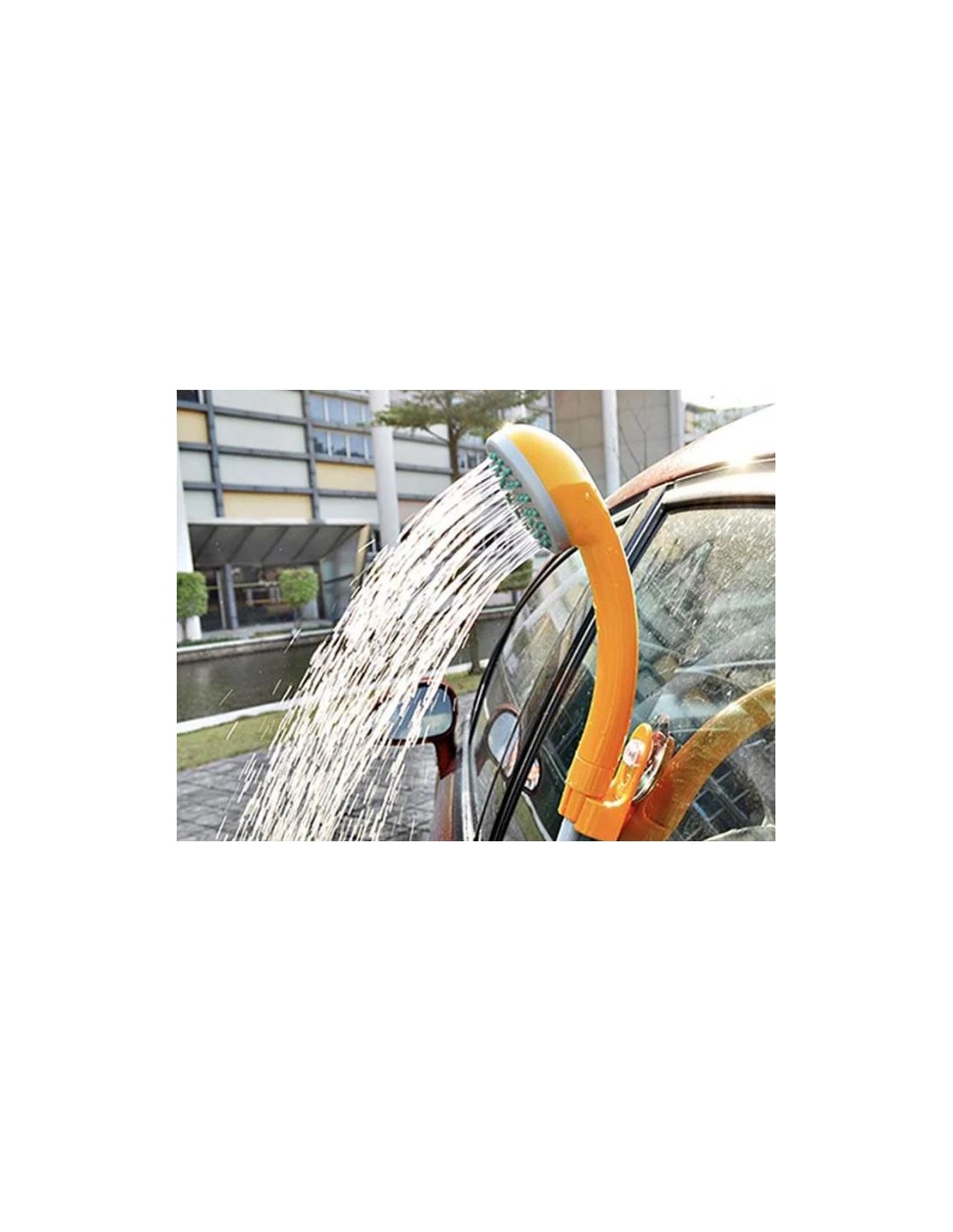 Since it is equipped with a rechargeable battery, it does not need to be connected to the mains socket. The shower pump can be placed in a container or bucket containing water to enjoy a refreshing shower of about 50 minutes.