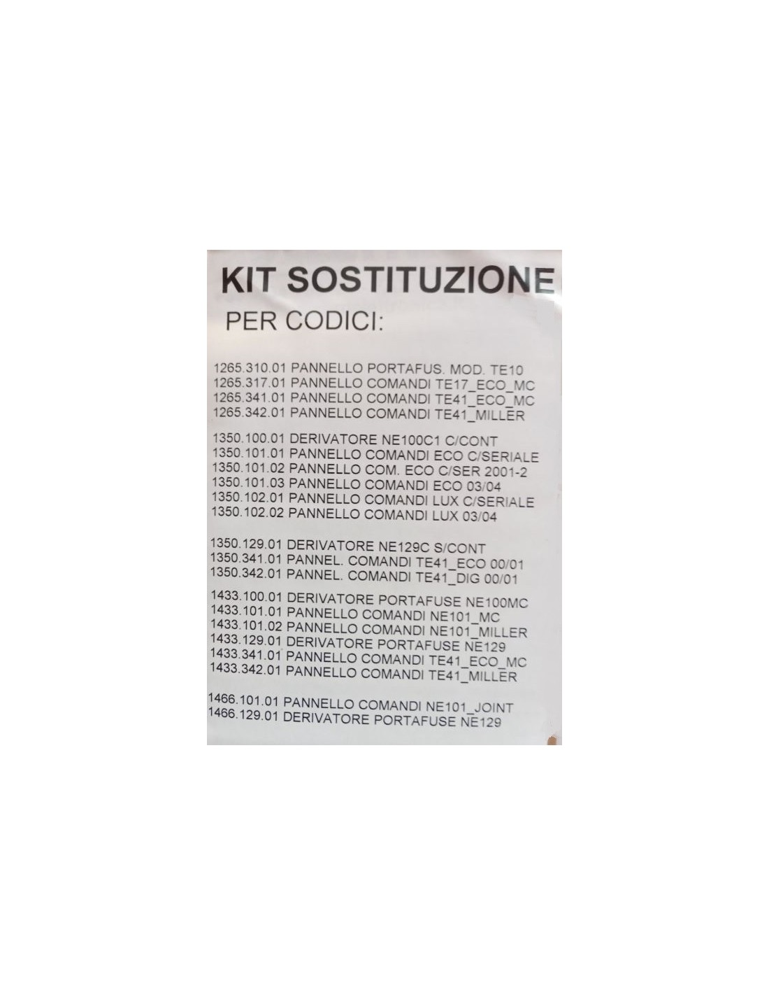 000.403.57 - REPLACEMENT KIT NE100-NE129-TE42-TE10 - JUNCTION + C PANEL NE274 + SERIAL + TERMINAL KIT