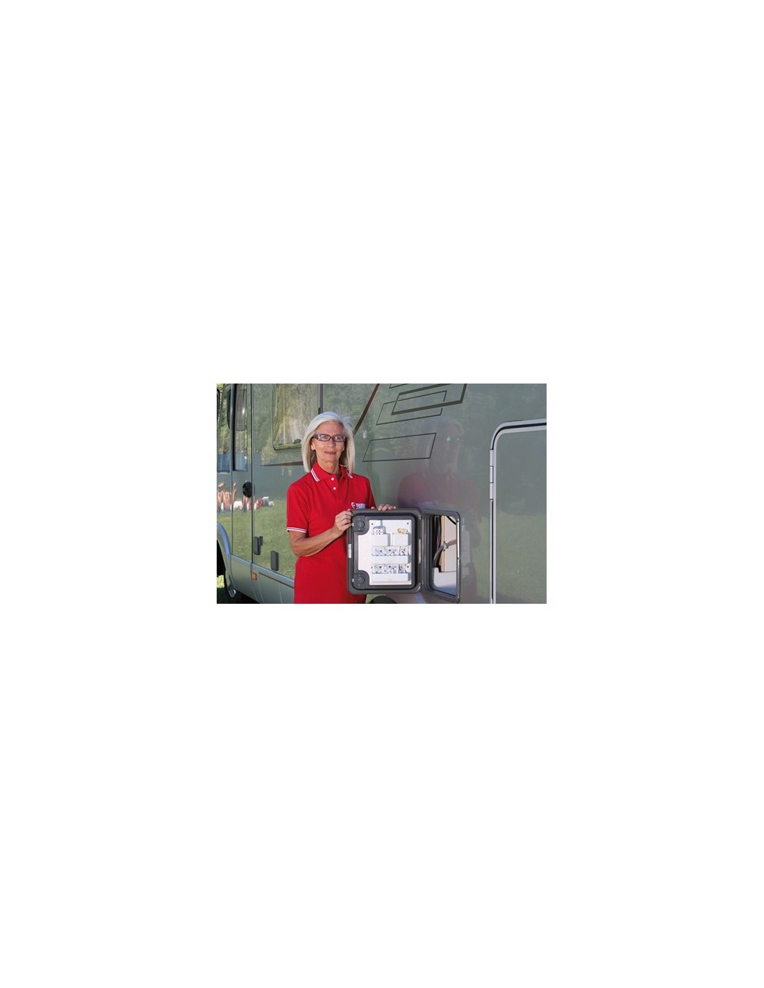 It is fixed with the standard screws inside the door of the Kassett Thetford or Dometic of the vehicle.