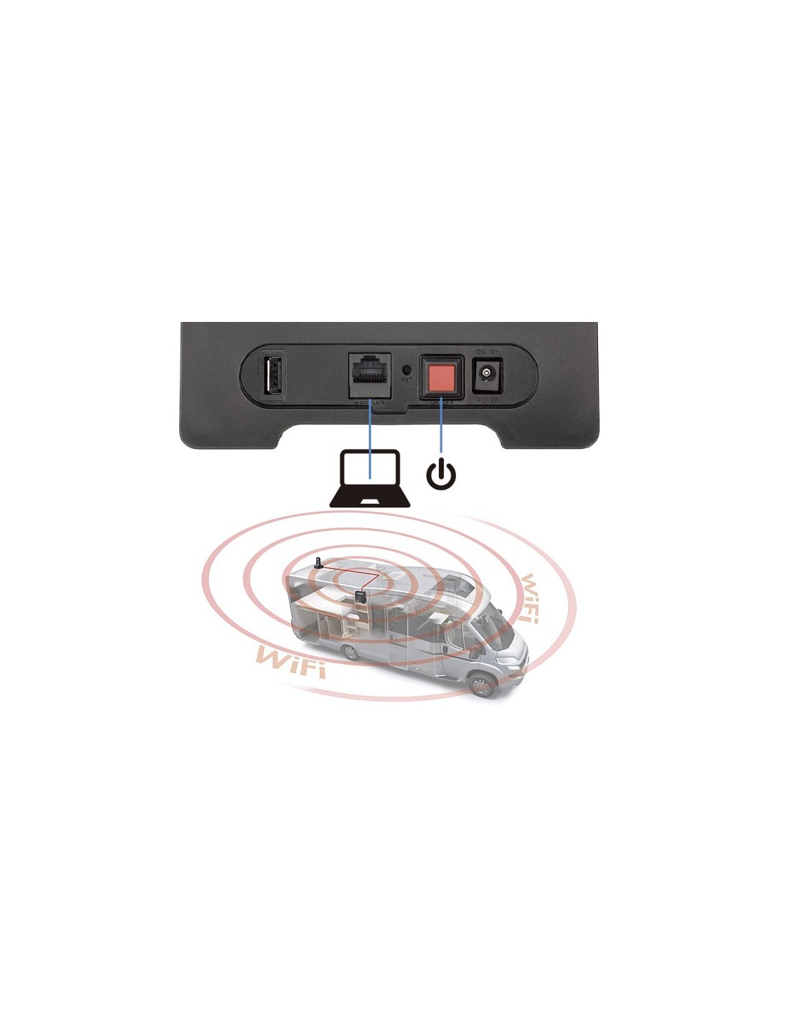 The new WLT24EX2 router has the same dimensions and aesthetics, as well as similar technical characteristics as the WFT402 WiFi, but in addition it is equipped with the WIFI signal repeater function and can therefore retransmit a WIFI signal from sources available nearby, such as Camping, Restaurants, Shopping Centers, etc., inside the Camper.