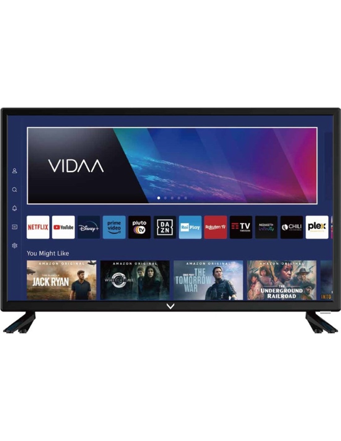 24" 12V SMART LED HD TV, VIDAA OPERATING SYSTEM, BUILT-IN WI-FI, DVB-T/T2 HD DIGITAL TERRESTRIAL TUNER AND DVB-S/S2 HD SATELLITE TUNER, MULTIMEDIA CONTENT PLAYBACK VIA TWO USB, COMPATIBLE WITH CI+ HD CAM MODULE, DIRECT LED backlighting, RJ45 network input, APP support for streaming (YouTube, Netflix, Prime Video, etc.), EPG function (electronic program guide), AV inputs (RCA) x1 / HDMI x 1, CI+ CAM* input (supports HD resolution content playback), Digital optical audio output, Two USB inputs for multimedia file playback, Remote control with batteries included, 3.5mm headphone output, Removable support base, AC 100/240V power supply, (50/60Hz) - DC 12V, Adapter 12V cigarette lighter socket (included),