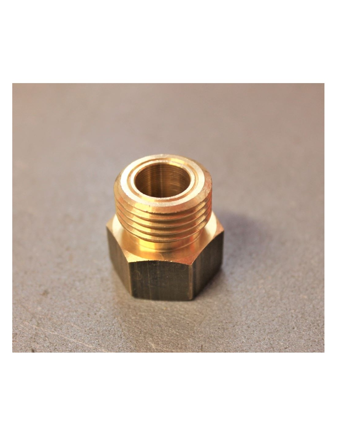 Left nut BOTTLE ITALIA W20x1/4 SX with M1/4 RIGHT injector . Nut W 20 x 1/4" left. Right 1/4" male injector. In yellow brass. Used to connect LPG gas regulators with 1/4 female connection directly to cylinders, tanks or control units.