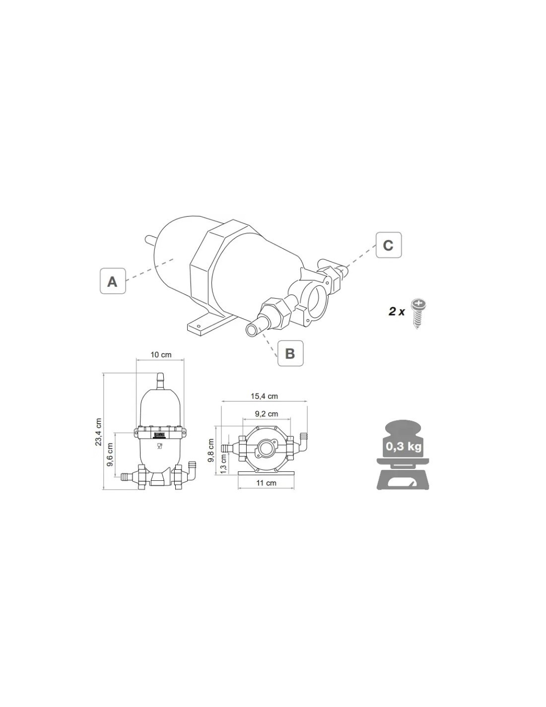 Attacco idoneo per pompe FIAMMA e SHURFLO
