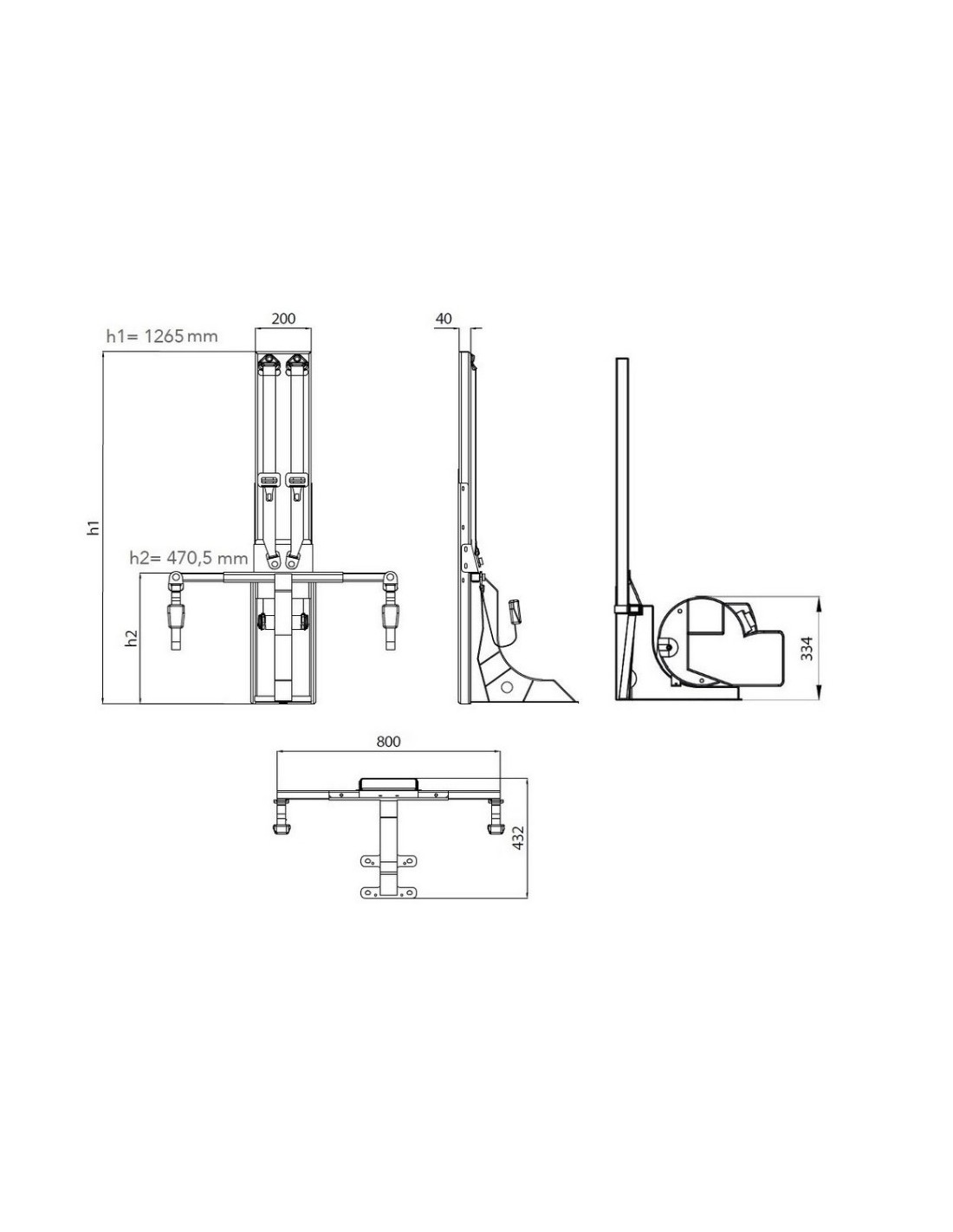 Cod. 9SK0210201X00 --> Struttura 9SC0106070V01 - h.1265 mm - Combi ready Curvo + Staffa 9SC0112601V01 + 9SC0024200V01 + Kit di montaggio 5KV0112701X00