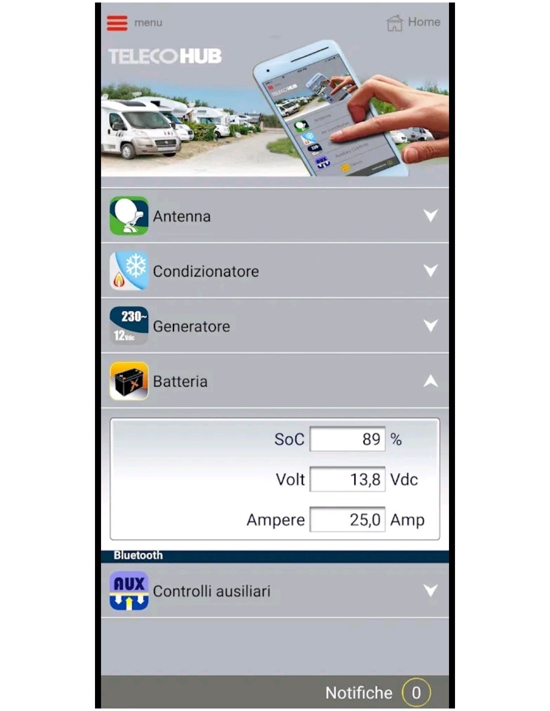 Pannello di controllo (opzionale) con lettura dello stato di carica e comando di ingresso/uscita dalla modalità rimessaggio.