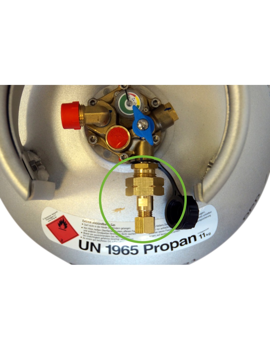 Entrata: Attacco per bombole attacco tedesco, KLF (G.12) Secondo EN15252: W21,8 x 1/14 LH