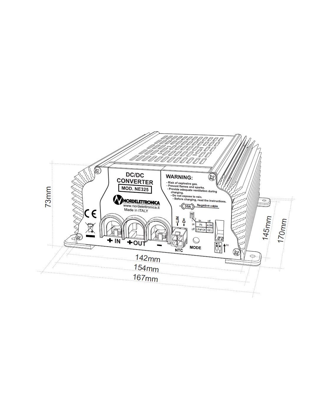 Nordelettronica NE325 - DC/DC POWER CONVERTER - Booster di carica batterie 12V 40A - 000.325.02