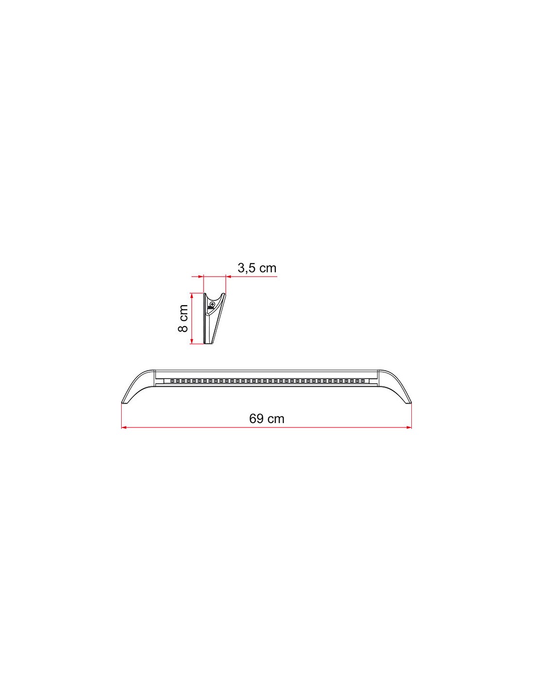 Caratteristiche simili alla LED Awning Light ma dotata di terminali a forma di gocciolatoio come pure l’incavo del corpo centrale.