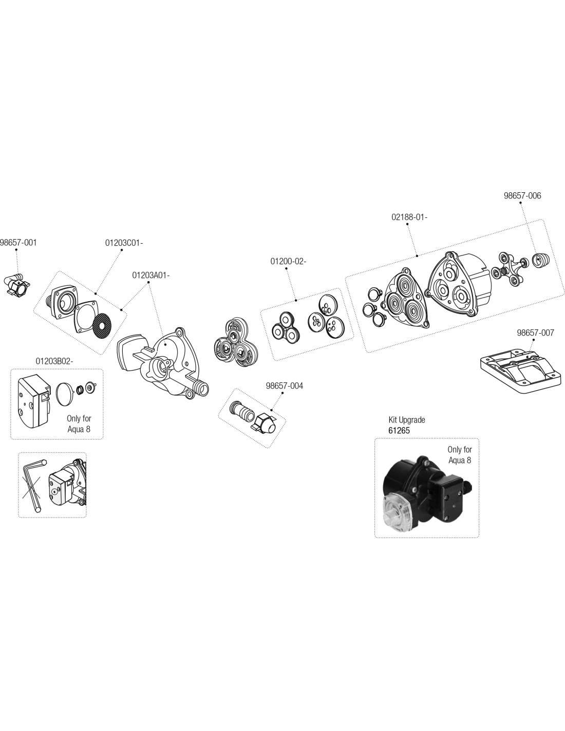 Aqua 8 è la classica pompa autoadescante con filtro incorporato e con la basetta antivibrazione Silent Plate di serie.