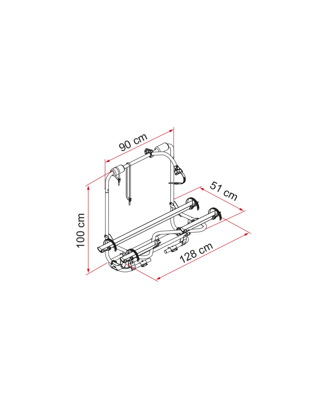 La parte superiore bascula per permettere di aprire il gavone della caravan anche con le biciclette montate. Dimensioni ridotte a causa dei timoni corti.