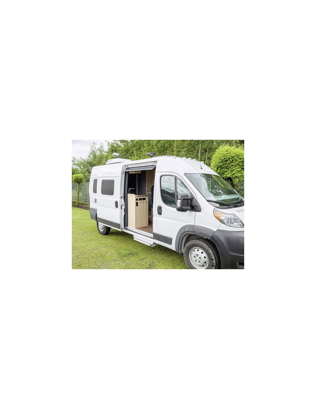 La grondaia è fissata saldamente al bordo superiore dell’apertura della porta e dirige l’acqua lontano dal veicolo.
