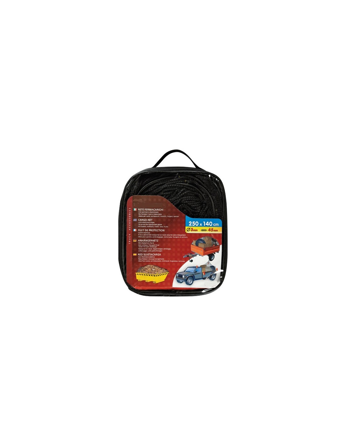 RETE ELASTICA FERMACARICHI PER RIMORCHIO 250X140 CM - DIAMETRO 3 MM - MAGLIA DI 45 MM