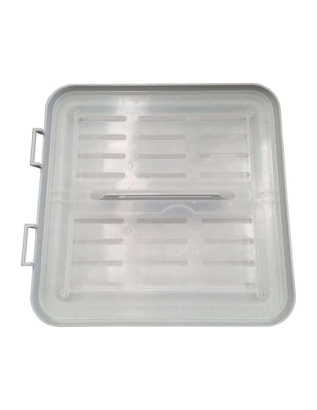 Oblò universale da tetto in plastica bianca opaca resistente UV, foro scocca 385 x 385 mm, robusto, economico, con apertura a compasso.