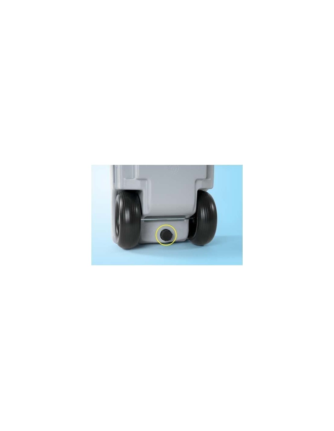 In polietilene HDPE per uso alimentare, con maniglia di trasporto e pneumatici in PVC.