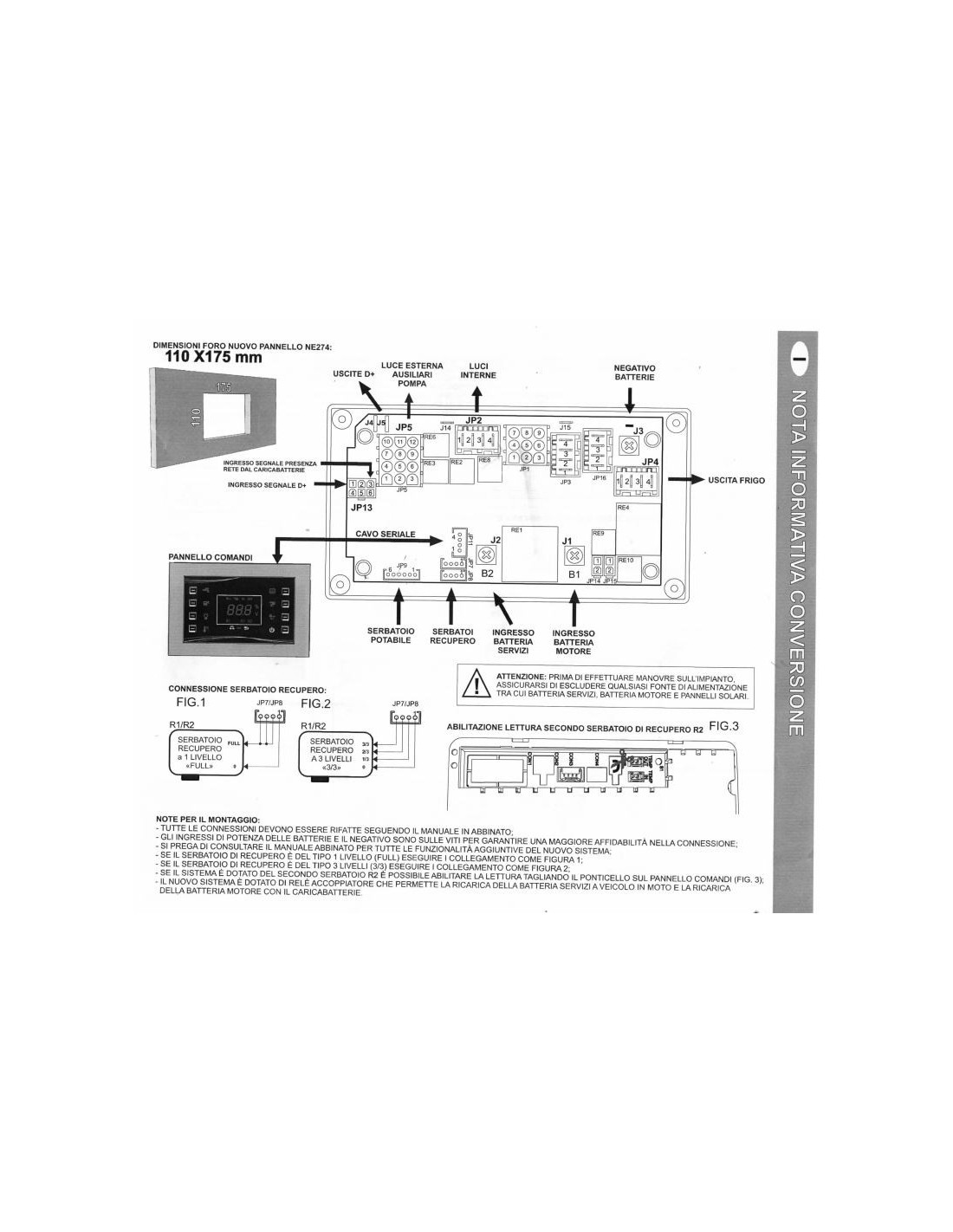 Il pannello risulta di dimensioni maggiori del vecchio ed occorre rifare il foro di installazione a 110x175 mm