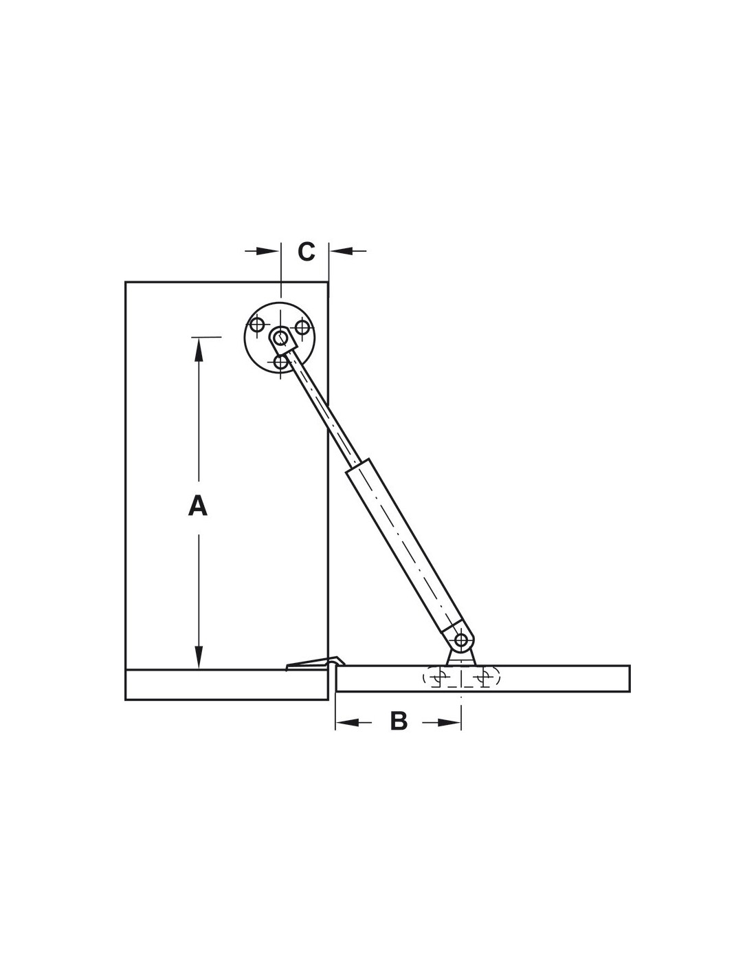 Braccetto a gas per antine a ribalta in legno o con telai in alluminio 80 N