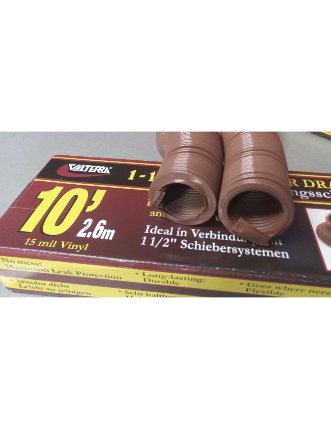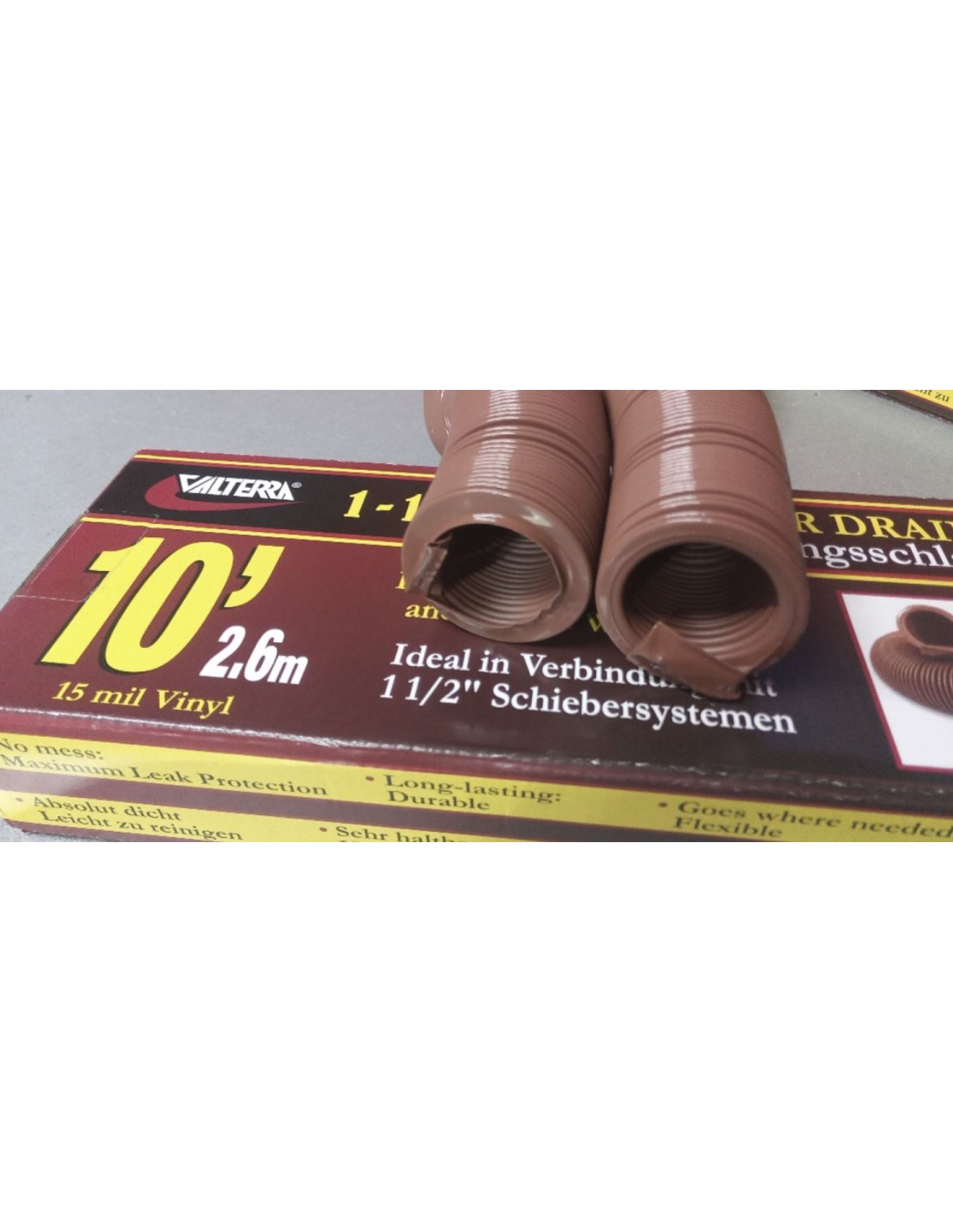 Attraverso il tubo estensibile delle acque reflue, che può essere allungato e piegato fino a 1,10 m, le acque reflue possono essere scaricate nella fogna o nel serbatoio delle acque reflue.
