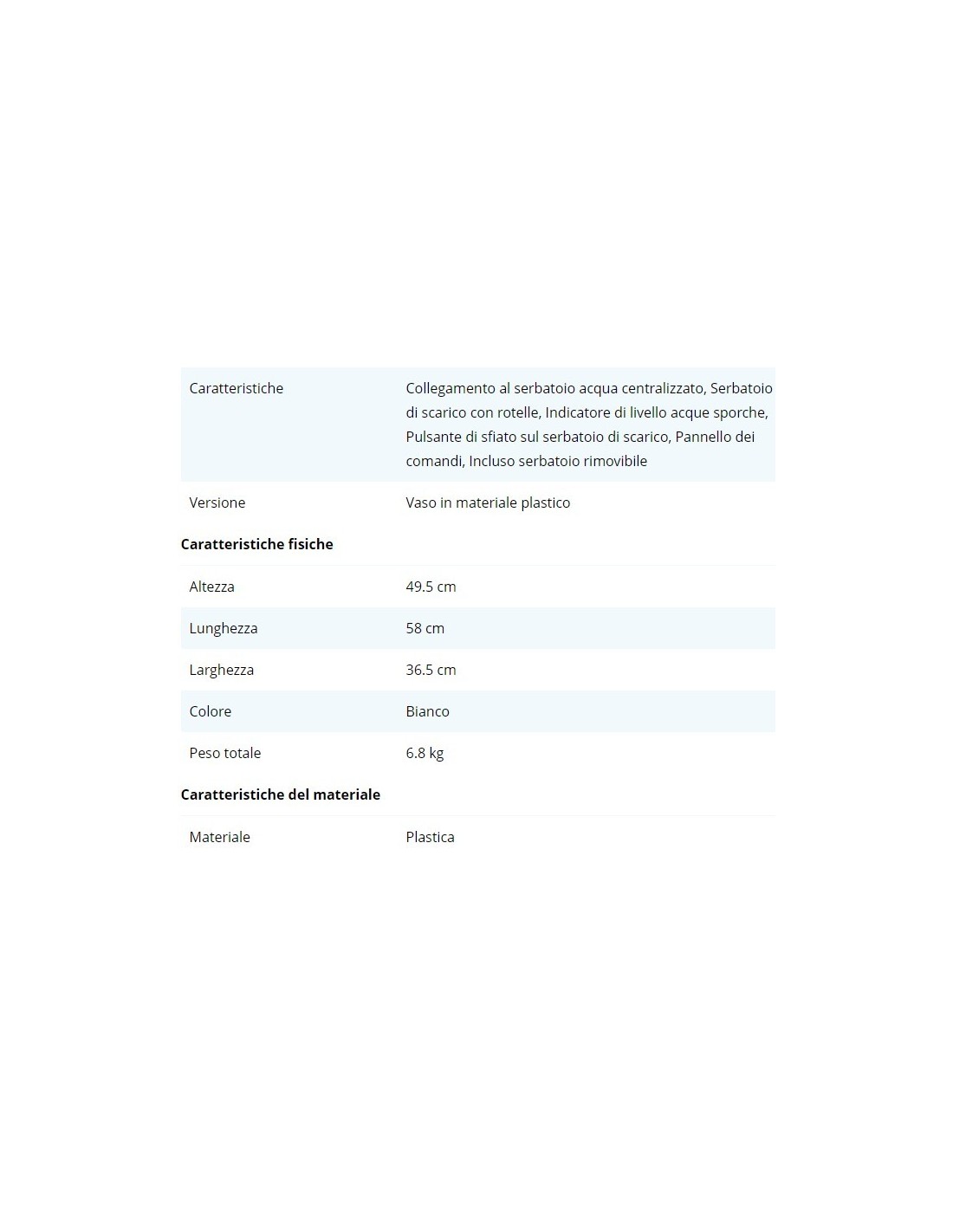 - Capacità del serbatoio di scarico: 18 litri
