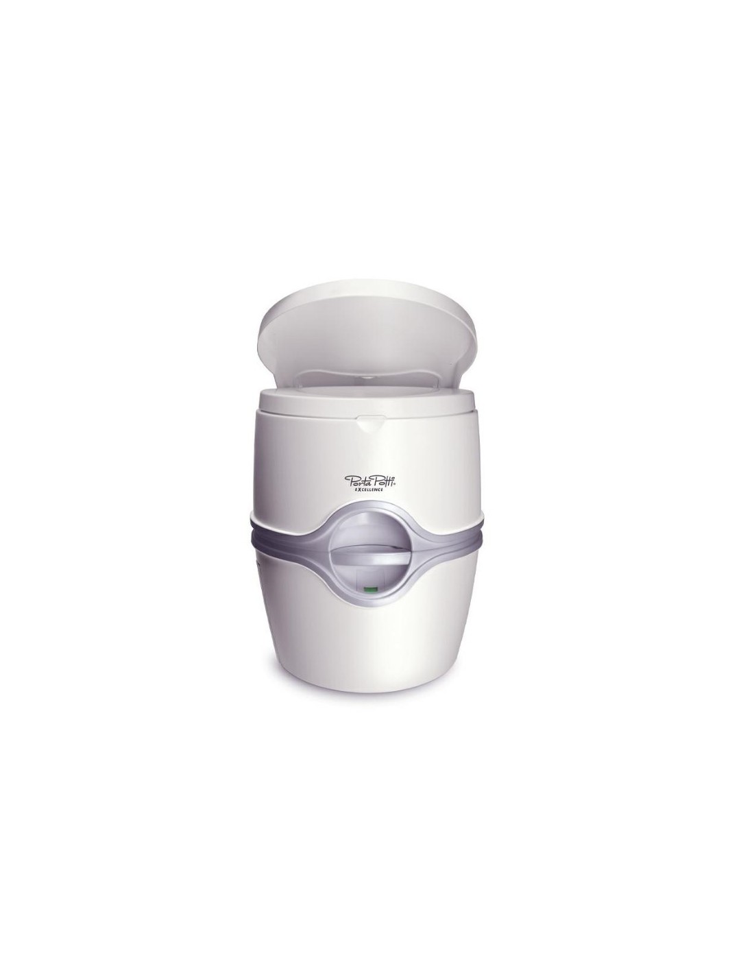 Porta Potti Excellence vanta il design più caratteristico di sempre ed è dotata degli accessori più innovativi. Il suo design offre un pannello di controllo integrato con la pompa, l'unità di caricamento dell'acqua e l'indicatore del livello del serbatoio dello sciacquone (A - vedi immagini). Questo indicatore e l'indicatore di livello (B - vedi immagini) del serbatoio di scarico segnalano quando caricare il serbatoio dello sciacquone e quando svuotare il serbatoio di scarico. Inoltre, il Porta Potti Excellence è di norma munito di portarotolo per carta igienica integrato (C - vedi immagini).